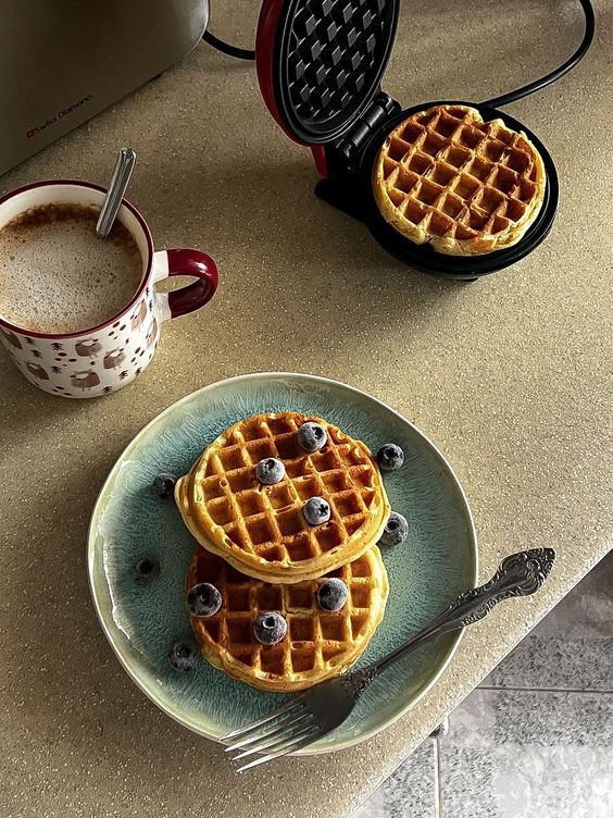 Waffles listos en solo 3–5 minutos, ideal para desayunos express o meriendas rápidas.